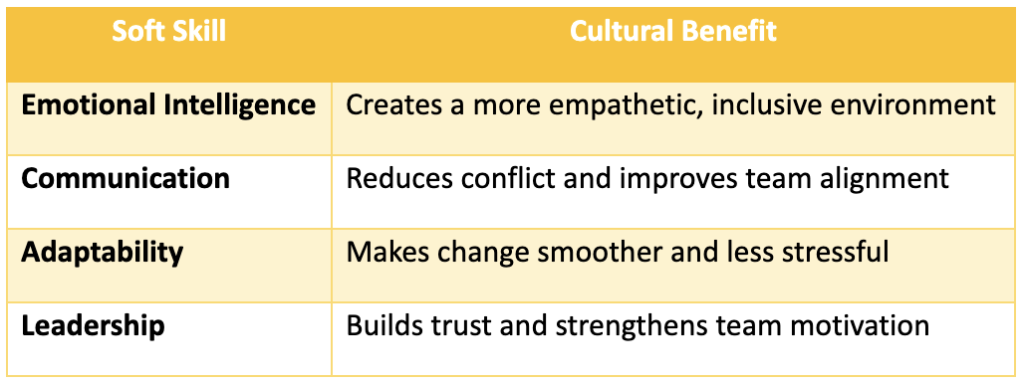 To make things clear for you, here’s a clear table on how soft skills impact culture: